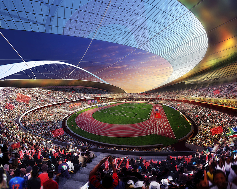 Capacity: Stadium 60,000 seats; Gymnasium 12,000 seats, Natatorium 3,000 seats