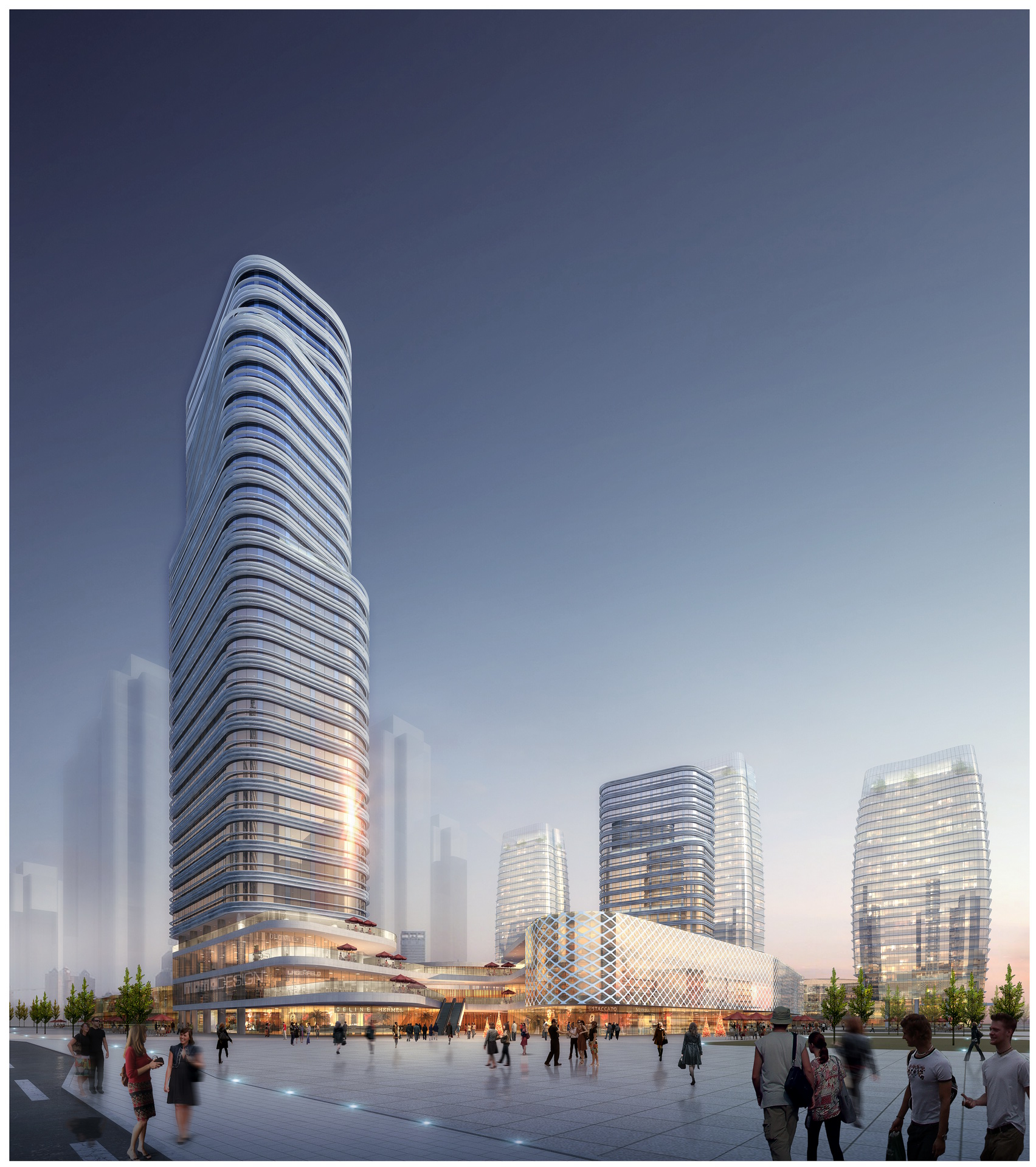 On the East side of the 3rd ring road of Fuzhou, the site is composed of 4 lands. Each land has a particular program (Hotel, shopping mall, offices; Soho; Housing). We chose to design the mall framed by the hotel and the 150-meters-height office tower. This complex becomes the start of an East-West pedestrian commercial street that crosses the site through the Soho buildings. The main towers are shaped like flowers, gently extending and retracting. The Soho towers are shaped like mountains, creating public terraces at different levels. I successfully designed this project with one junior designer and secured the land with the mall, office, and hotel towers. I carried on with a bigger team for the Schematic Design.