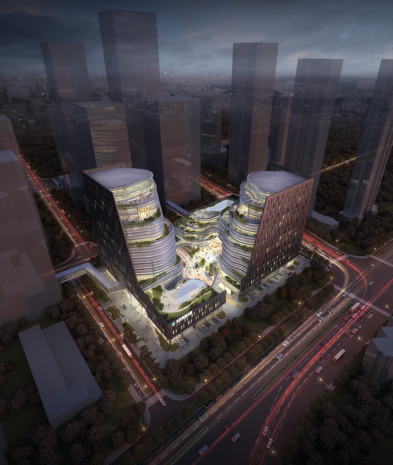 As the headquarters of a life insurance company, the building is designed to embody the very essence of the company’s products: a safe and secure space where life can thrive. The exterior facade exudes strength and solidity, reminiscent of a castle, providing a feeling of safety and security to the occupants. On the other hand, the interior spaces are light, curvy, and transparent, with terraced gardens that are teeming with life.