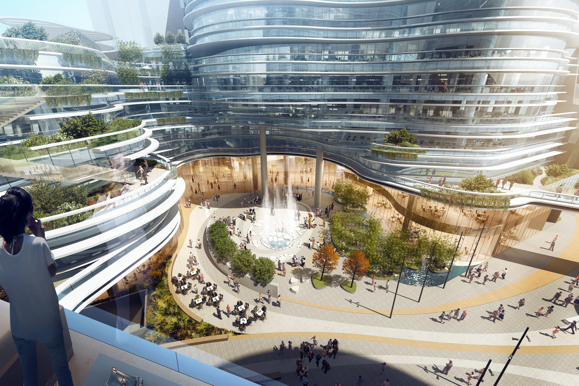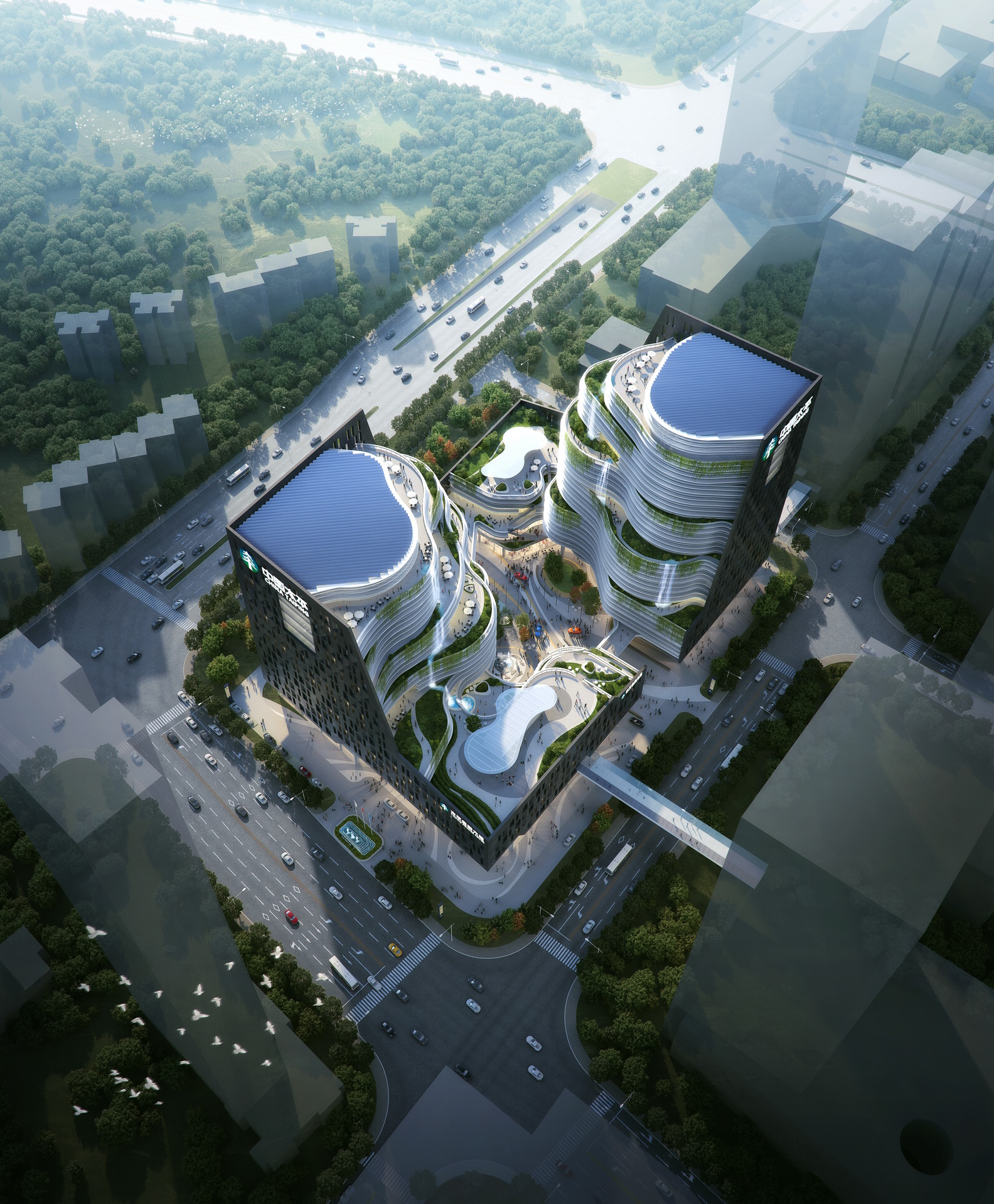 The building comprises two structures that rise from opposite corners, taking full advantage of the views and the natural light. The terraces that span the building create a unique pattern like tea fields on a mountain, providing a peaceful outdoor space for workers to relax and enhancing their overall wellbeing. The lobby is a magnificent three-floor atrium that connects the ground floor with the public loop on the third floor. The atrium is designed with a strata theme, much like a cavern, symbolizing a metamorphic transition from the mundane world to heaven. It is a space that is both awe-inspiring and welcoming, a perfect representation of the company’s commitment to providing a safe and secure space where life can thrive.