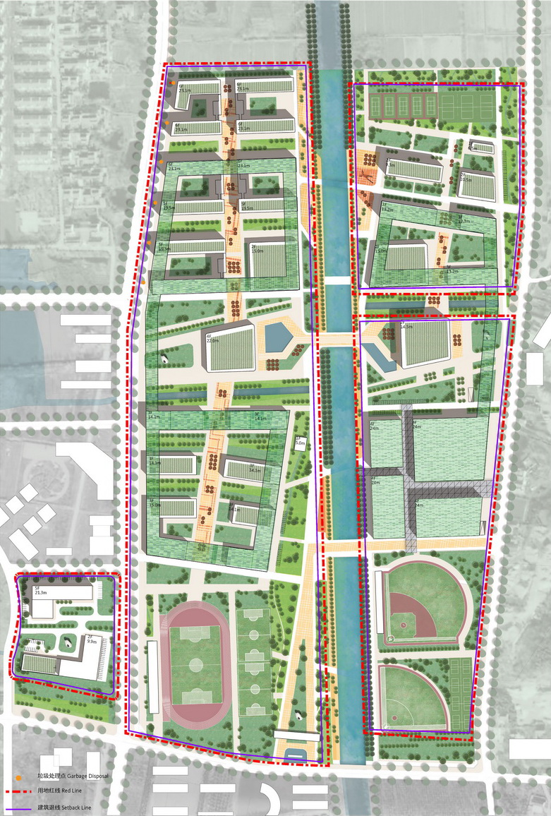 In the beautiful town of Tongshan, situated near Nanjing City, there was a vision to develop a sports school that caters to both sports enthusiasts and professionals. The site, nestled amidst the mountains, has a canal running along its long dimension, almost in a North-South alignment. Our team utilized this natural feature and the North-South axis to create a stunning X-shaped central green area that houses the main public functions such as the library, activity center, and auditorium, along with entrances at the crossing point, right in the heart of the site.